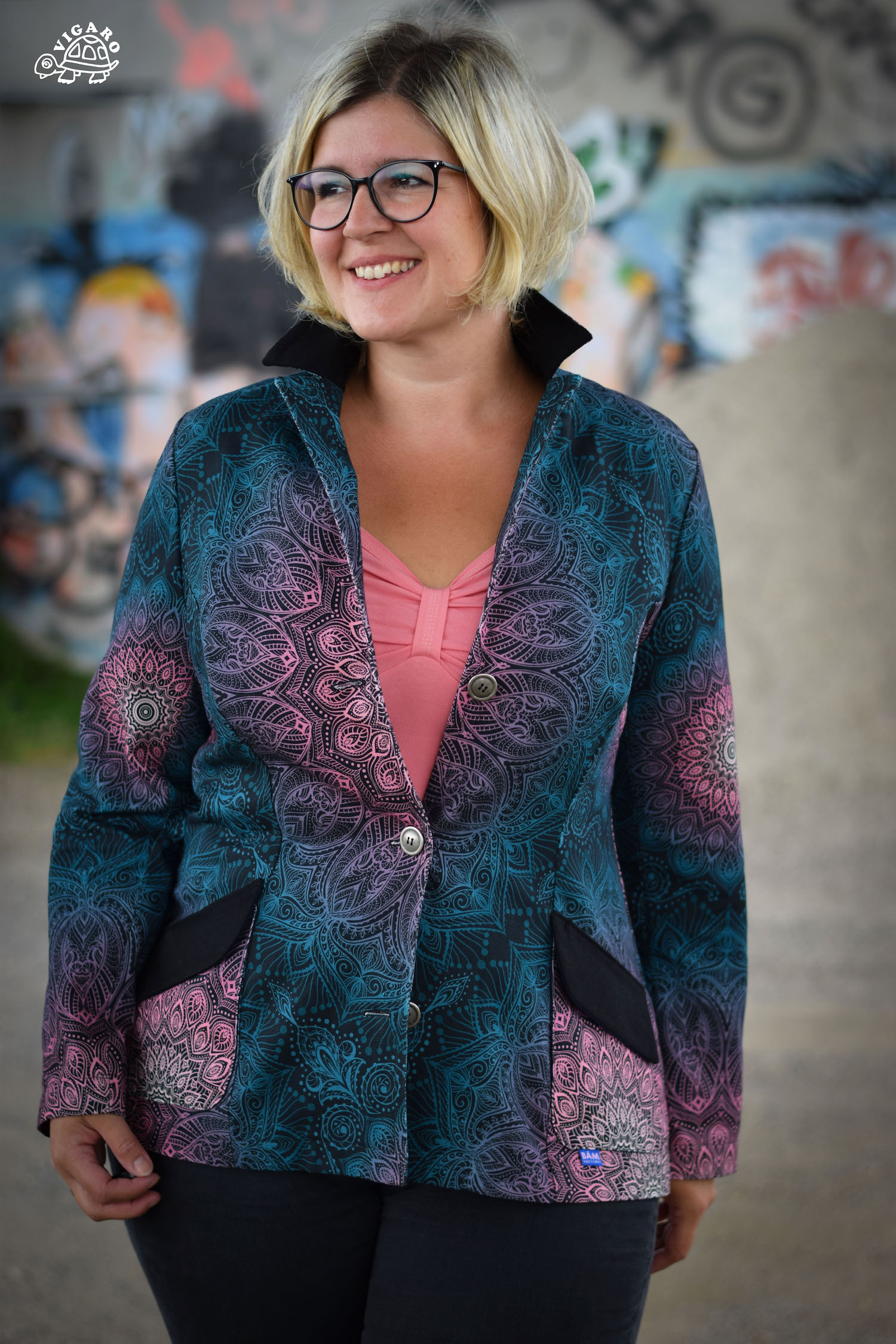 Es handelt sich um einen Transferdruck. Bei dieser Produktionsart kann es passieren, dass die gedruckten Muster nicht gestochen scharf gedruckt werden. Dies liegt in der Natur dieser Druckart. Es ist KEIN Mangel der Ware.