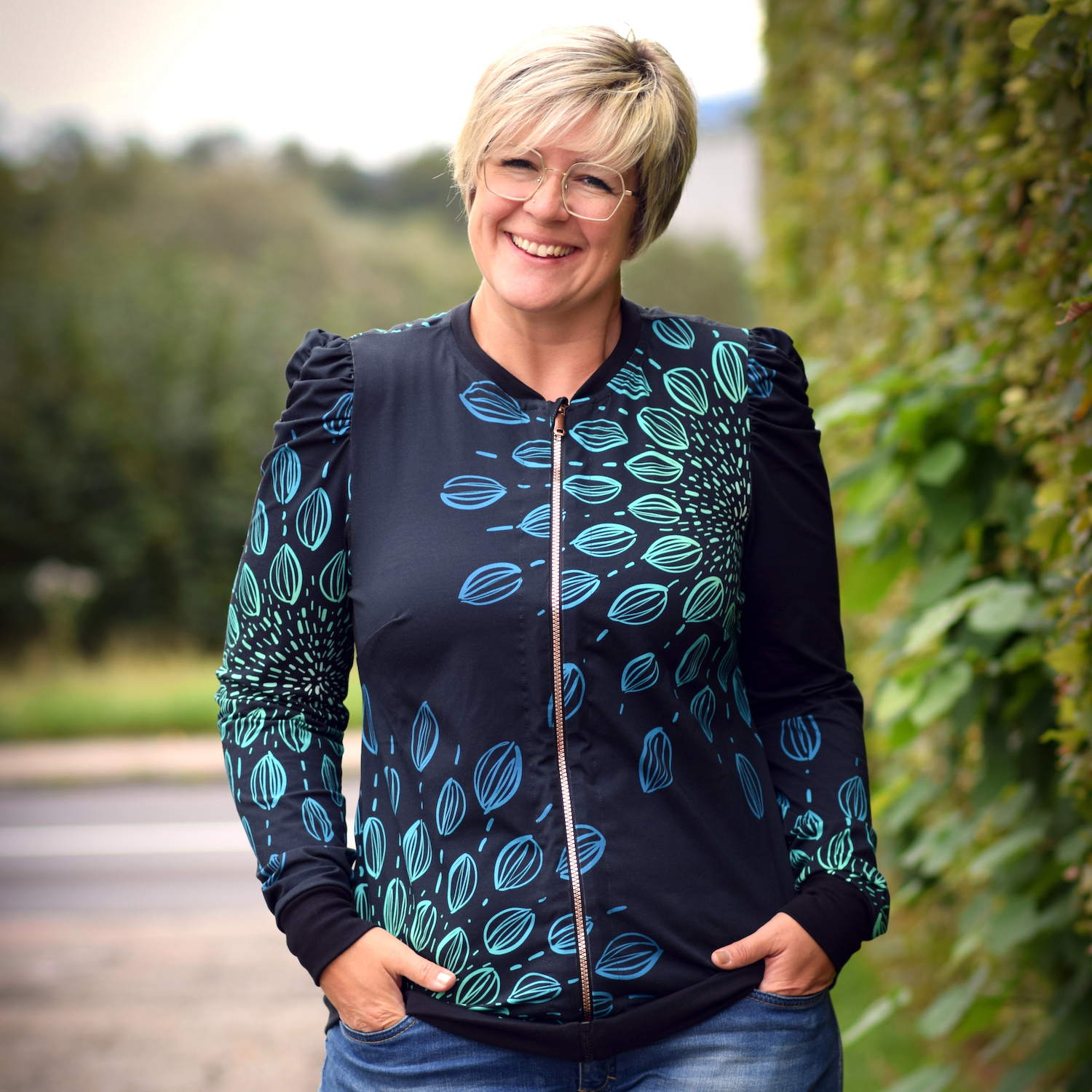 Twigs Schwarz-Petrol BIO-Jacquard-Eigenproduktion Jacquard / Strickstoff